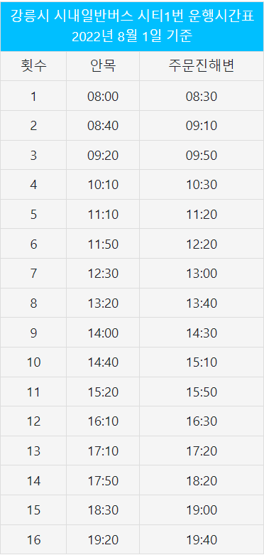 - 뚜벅이 : 강릉 시티버스 1 (시내버스) 현금 1,700원 카드 1,530 , 배차시간이 살짝 긴 편이니 네이버 지도나 네이버에 강릉 시티 1버스를 검색해서 실시간 버스 위치를 항상 체크