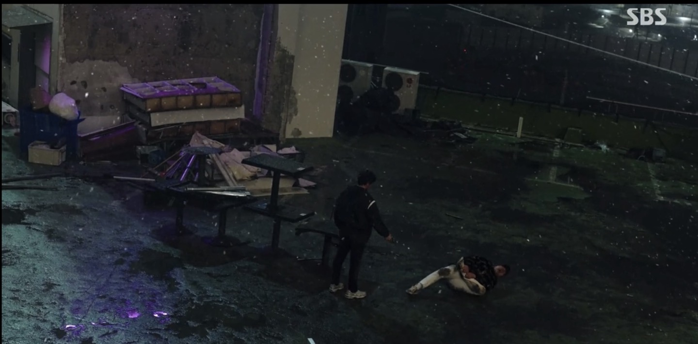 재경은 동료의 아킬레스건을 재경의 눈을 보며 끊은 장철구를 쉽게 용서할 수 없어 그의 다리에 총알을 쏴서 그대로 복수를 합니다.